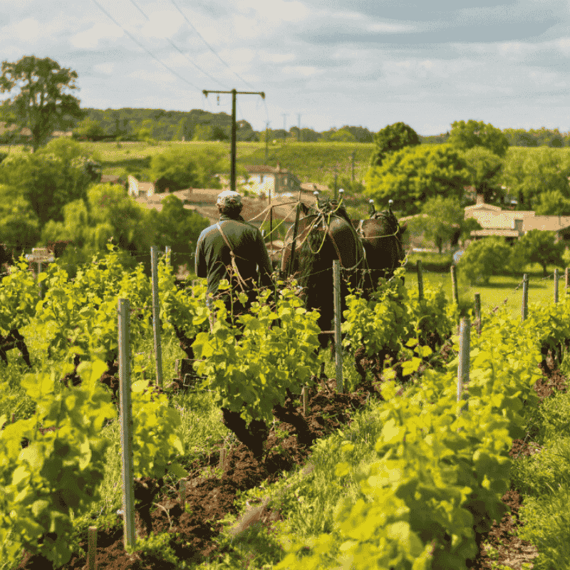 雅榭酒莊是極少數同時取得 ISO 14001 環境管理系統、HVE 3(最高等級高環境價值認證)的索甸酒莊,酒莊在葡萄園中重新引入馬匹犁耕,降低土壤壓實與機械干擾,釀造上嚴格控管植保與施肥,讓風土能不被掩蓋的表現在酒中。