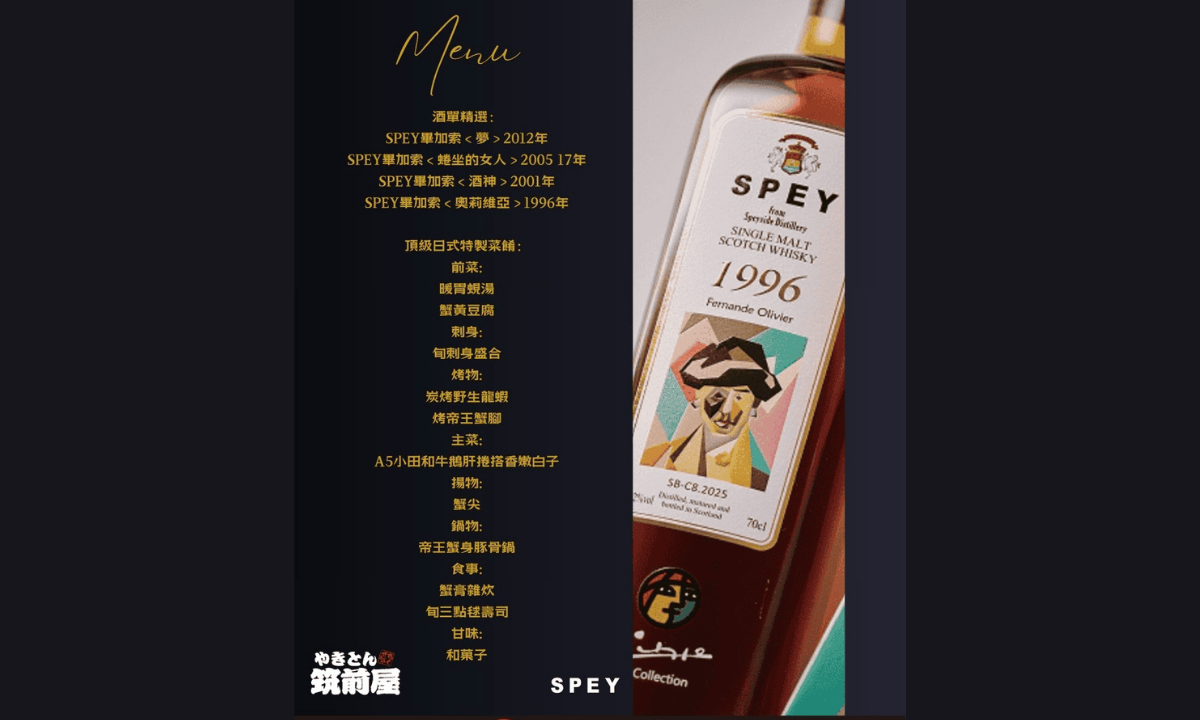 【筑前屋 × SPEY 畢卡索靈感系列 威士忌餐酒會|活動資訊】