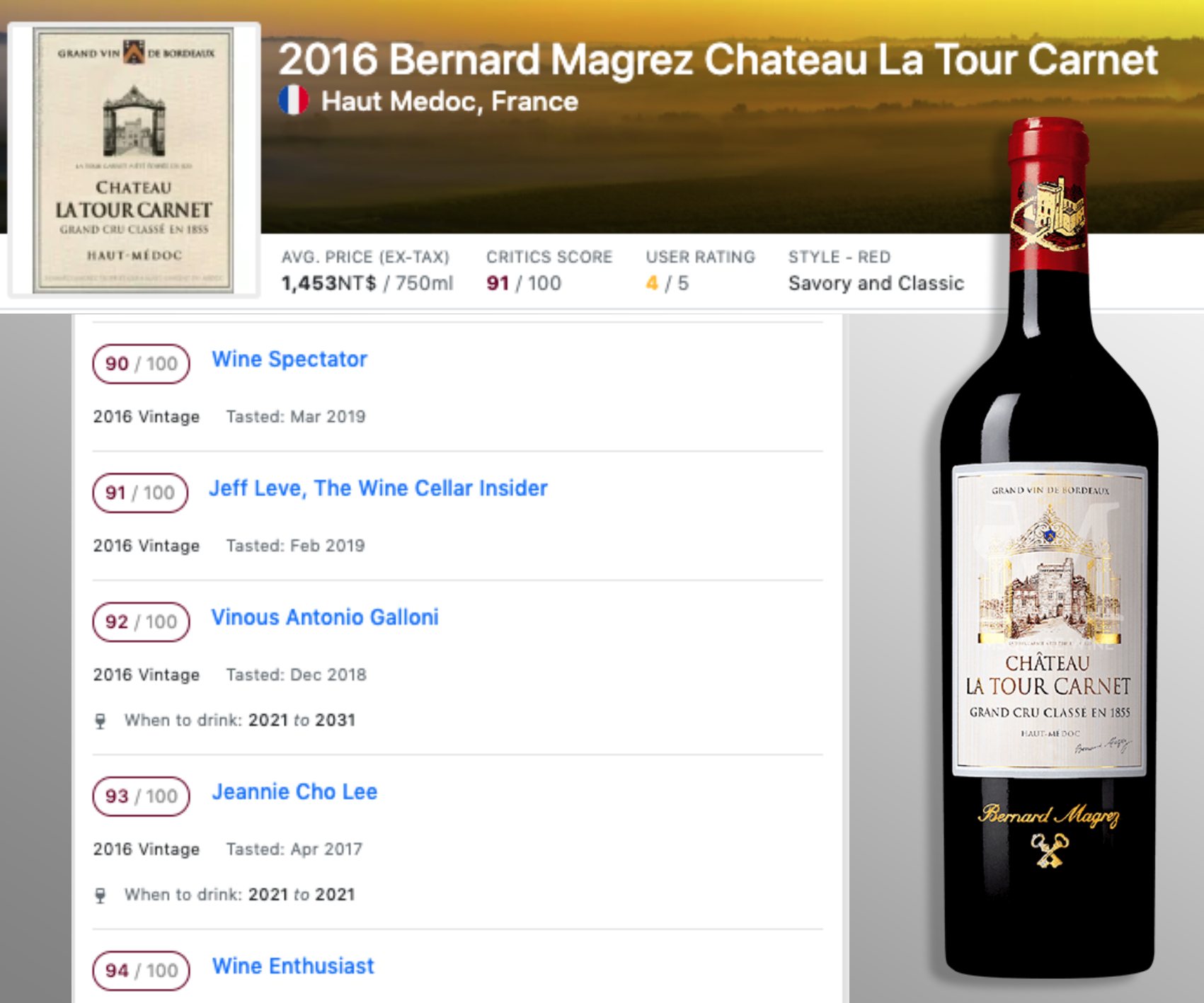 【Château La Tour Carnet】拉圖卡內堡紅酒