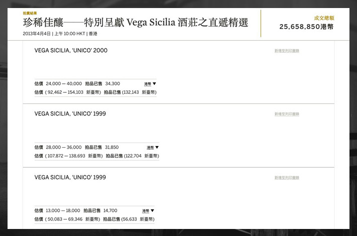 1929年在巴塞隆納世界博覽會(Exposicion Universal de Barcelona)中,維嘉西西里亞酒廠的旗艦酒款 Unico 以1917與1918兩個年份贏得榮譽大獎,打響了酒莊的知名度。而由於其優異的酒質及陳年實力,即使價格不斐,在全球頂級酒市場中依然佔有一席之地。