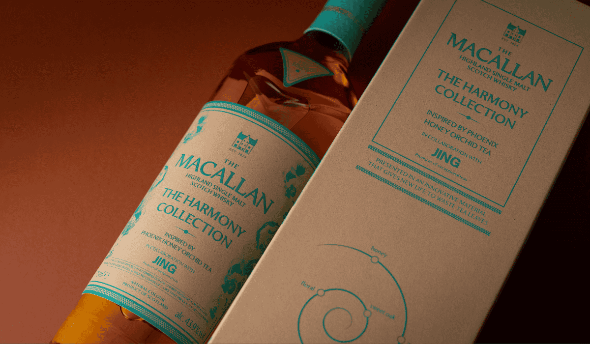 The Harmony Collection是一款透過以環境永續為靈感的系列威士忌,過去曾經運用可可、咖啡、橡木桶製程中的產物,轉換為循環再生材料打造極具環保概念的外盒與酒標,今年(2025)更是攜手世界精品茶商JING TEA運用製茶產生的茶廢料製作外盒與酒標,完美展現麥卡倫工藝魅力與淨零永續的承諾。