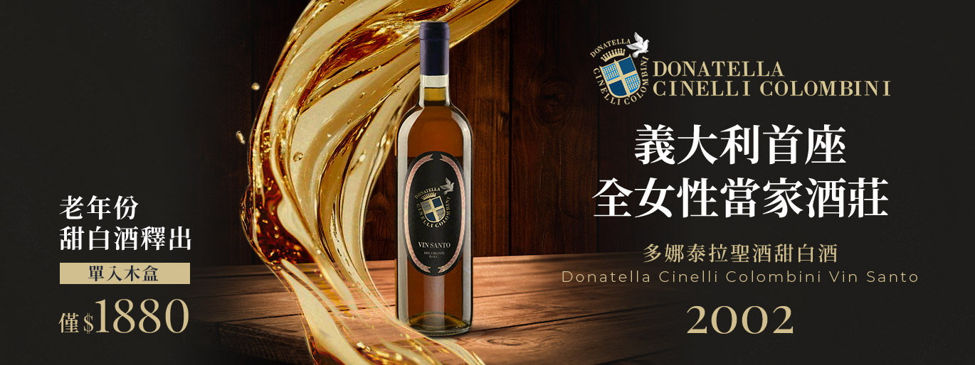 超老年份 Vin Santo 聖酒登場,經過了 23 年的陳年,一開瓶就是琥珀光芒與濃郁層次,咖啡、太妃糖、杏乾香氣滿到溢出,驚豔全場,甜美又高貴,榮獲 RP 95 高分讚譽。