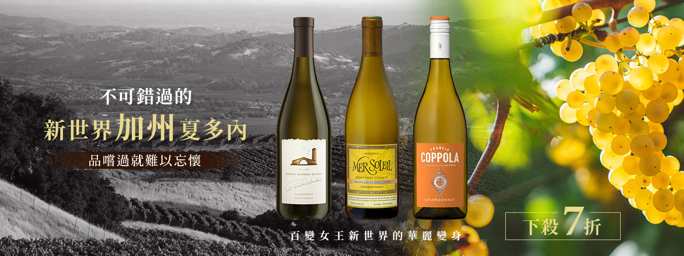 加州百變女王夏多內以媲美布根地的實力、卻只要 1/2 價深受許多酒迷的愛戴,Napa 濃郁華麗、Sonoma 冷涼優雅,一次喝到兩大產區的精華。