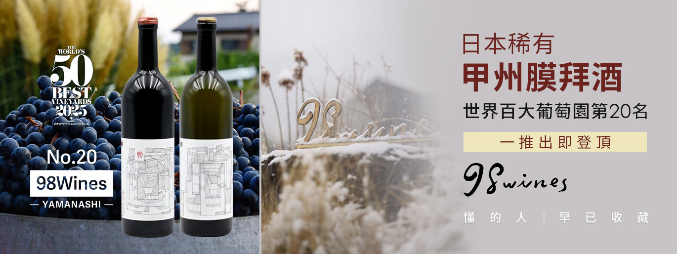 一推出即登頂!98WINEs 是日本最稀有的膜拜酒,由資深釀酒師平山繁之打造,融合布根地精緻工藝與日本職人精神。