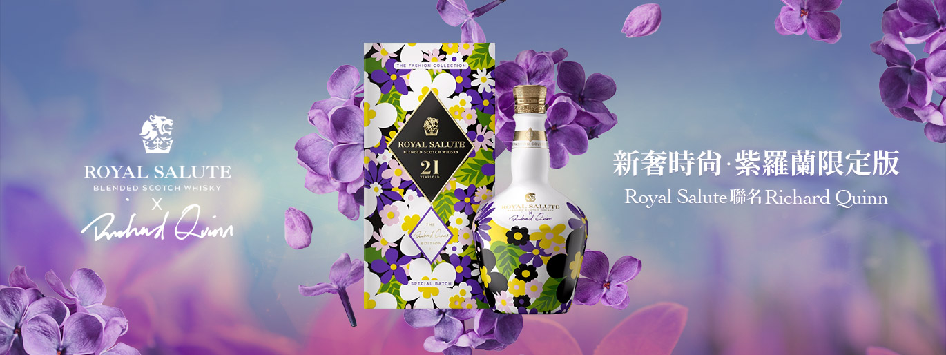 從設計的角度來看,《皇家禮炮 21 年 新奢時尚系列》更像是一件被精心構思的時尚創作。皇家禮炮再次攜手英國設計師 Richard Quinn,將其標誌性的大膽花卉圖騰融入經典皇家禮炮瓶身,三款作品以鮮明的紫色、黃色與綠色在純白背景上形成強烈視覺對比,張揚卻不失優雅,極具展示辨識度。