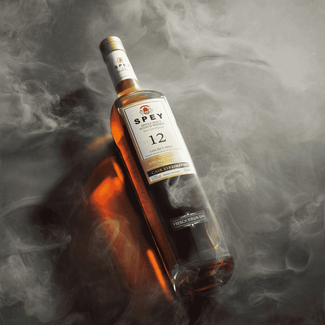當霧氣輕落橡木,時間彷彿慢了下來;火焰不再張揚,而是被溫柔引導,緩緩滲入木紋深處。SPEY 將斯貝賽純淨的酒液送入前所未見的 Brume Dorée 金色橡木桶,用全新的桶藝語言,改寫品味者對熟成的想像。