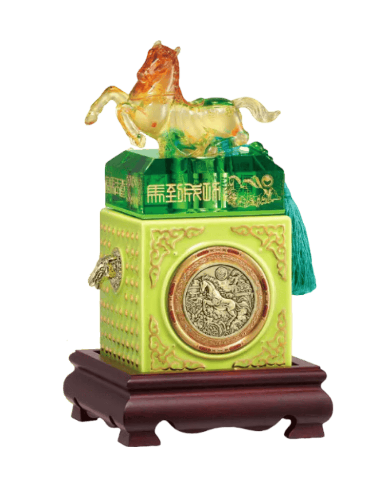 2026 馬年限定的《馬到成功玉璽酒》,以奔騰駿馬化作晶透琉璃,搭配沉穩陶瓷酒器,整體設計內斂卻充滿好兆頭。昂首向前的馬姿,象徵一馬當先、事事順行;酒器帶點鈷綠色調,給人清新而穩定的感受,是台灣人熟悉的祝福語彙,健康、繁榮、一路向前,無論送禮或收藏,都很有年份意義。 酒質同樣到位。這瓶 0.6L、56 度的馬到成功玉璽酒,嚴選 金門酒廠 多年窖藏的陳年高粱酒,在金門坑道中靜靜熟成至少八年以上,讓酒體慢慢呼吸、層次逐漸堆疊。入口綿甜柔和,陳香隨後展開,尾韻乾淨耐喝,是適合在重要時刻慢慢分享、越喝越順的一款馬年限定佳釀。