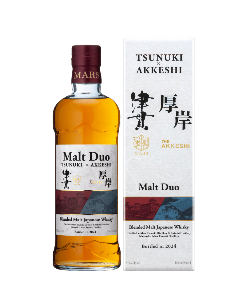 自 2016年起「津貫(TSUNUKI)」與「厚岸(AKKESHI)」兩個風格截然不同的日本威士忌蒸溜所,展開了一場別具意義的聯名計畫。 來自鹿兒島的津貫擁有溫暖的亞熱帶氣候,而北海道的厚岸則受惠於涼爽的沿海環境。在此次合作中,兩地互相交換未熟成的麥芽原酒,並在各自的蒸溜所進行熟成,以探索不同蒸溜所和氣候對威士忌風味的影響。 Mars Malt Duo「津貫X厚岸」選用於2018 年各自蒸餾的麥芽威士忌原酒,並在津貫蒸溜所內,靜置於波本桶中熟成超過六年,透過 Mars Whisky 職人的精湛勾兌工藝,從而創造出一款風味均衡且令人著迷的威士忌,充分展現了津貫溫暖的亞熱帶氣候與厚岸涼爽的沿海風土所交織出的獨特韻味,台灣市場特別推出獨家限定典藏木盒組,精緻包裝搭配細膩工藝,層次豐富的品飲體驗不容錯過。