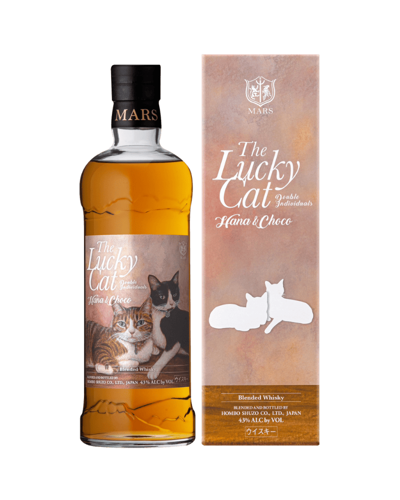「 幸運貓The Lucky Cat 」系列採用MARS威士忌日式精湛風格的調和技術所生產的威士忌,系列每年發售一款,2024年已來到了幸運貓第九部曲。四月Hana和Choco姊妹已7歲了! Hana是個溫柔又被寵愛的孩子,Choco是個活潑的神奇女孩,牠們個性和外表完全不同,但在寒冷的冬天的夜晚互相依偎取暖,睡著的樣子就是姊妹!Oloroso雪莉桶和葡萄酒桶的柔和甜味和水果味,融合西班牙橡木桶的風味,就像善良的姊姊Hana與調皮的妹妹Choco在一起的樣子。 Oloroso雪莉桶和葡萄酒桶的柔和甜味和水果味,口感交織融合為一體,熟成在西班牙木桶的調和威士忌,多層次堆疊的風味結構,讓人想起可愛又有個性的兩姊妹,完美展現出牠們的魅力,是一款讓您感覺充滿溫暖與熱情的威士忌。