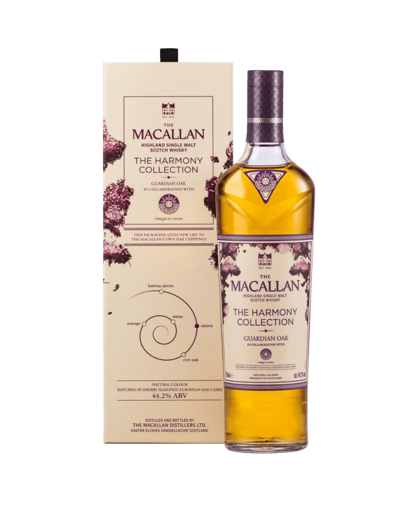 麥卡倫The Harmony Collection 的第四款力作,與 太陽馬戲團 聯手打造,以充滿想像力與創意的方式呈現橡木與威士忌的故事。這款威士忌由麥卡倫釀酒師團隊精心釀造,使用 初次歐洲紅橡木雪莉桶 熟成,帶來經典的雪莉橡木風味。 酒液散發出果乾的香甜與天然香料的細膩氣息,木質調性豐富而悠長,完美呈現麥卡倫對 創意、自然與工藝 的致敬。每一口都能感受到雪莉橡木桶賦予的深厚層次與溫潤口感,是對麥卡倫卓越品質的最佳展現。 The Harmony Collection 紫月橡木是一段關於自然靈感與保護環境的美麗故事,讓品飲者在每一次品飲中,都能感受到自然與創意的完美交融。